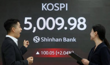 코스피, 사상 첫 5000포인트 돌파…증시 새 역사 22일 오전 9시 6분 현재 코스피는 전일 대비 101.03포인트(2.06%) 오른 5010.96에 거래되고 있다. 지수가 5000선에 오른 것은 이번이 처음이다.이날 1.57% 상승한 4980선에 출발한 지수는 매수세가 몰리면서 개장 1분여 만에 5000선을 넘어섰다. 현재 상승폭을 2% 넘게 확대하며 장중 5012.20까지 올라 최고치를 경신하고 코스피… 01-22 -