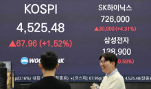 코스피 4,500 고지 넘어 ‘사상 최고치’ 경신 코스피가 4,500선을 돌파하면서 6일 또 다시 ‘사상 최고치’를 경신했다.이날 코스피는 전장보다 67.96포인트(1.52%) 오른 4,525.48에 장을 마쳤다.새해 들어 첫 장이 열렸던 2일 처음 4,300선을 넘은 코스피는 전날인 5일 4,400선을 돌파한 지 하루 만에 4,500선 고지마저 넘었다.지수는 전장보다 11.44포인트(0.26%) 내린 4… 01-07 -