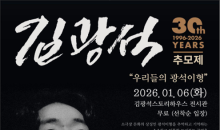 김광석 30주기 ‥헌정 LP 발매 추모제 6일 개최 김광석스토리하우스 대구 전시관에서 김광석의 30주기 추모제 부제 ‘우리들의 광석이형’을 개최한다고 밝혔다. 매년 1월 6일 개최되는 김광석 추모 행사는 고 김광석을 기억하는 팬들과 시민들이 한자리에 모여 그의 노래와 정신을 되새기는 자리로 이어져 왔다. 특히 올해 30주기는 소극장 문화의 상징이었던 김광석을 추억하는 소소하고 따뜻한 트리뷰… 01-03 -