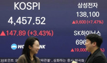 코스피 4,500 고지 넘어 ‘사상 최고치’ 경신 코스피가 4,500선을 돌파하면서 6일 또 다시 ‘사상 최고치’를 경신했다.이날 코스피는 전장보다 67.96포인트(1.52%) 오른 4,525.48에 장을 마쳤다.새해 들어 첫 장이 열렸던 2일 처음 4,300선을 넘은 코스피는 전날인 5일 4,400선을 돌파한 지 하루 만에 4,500선 고지마저 넘었다.지수는 전장보다 11.44포인트(0.26%) 내린 4… 01-07 -